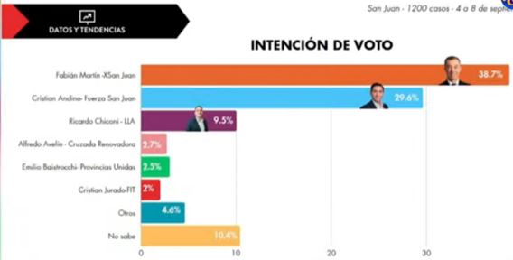 A menos de un mes de las elecciones legislativas del 26 de octubre, el panorama político sanjuanino parece estar definido. Según los últimos datos relevados por la consultora "Datos & Tendencias", el espacio político X San Juan obtendría un triunfo cómodo y amplio si los comicios se realizaran hoy.